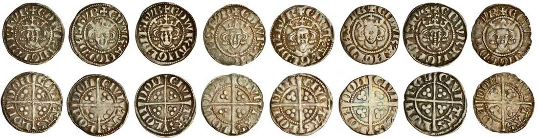 Edward I (1279-1307), Pennies (8), London, Class 2a, crown shaped to band, reversed Ns (3), 1.35g, good fine, 1.42g, fine, 1.42g, nearly very fine, Class 2b, tall bust, long neck, all Ns reversed (5), 1.45g, good fine, 1.36g, fine, 1.12g, nearly fine, 1.37g, good fine, 1.43g, fine (N.1014, N.1015; S.1385, S.1386; Stewartby p.171, IIa, IIb), the sixth clipped (8)