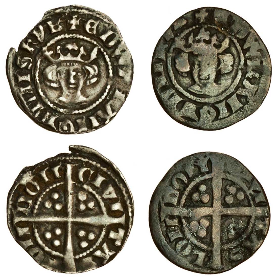 Edward I (1279-1307), Halfpennies (2), London, Class 6, 0.62g, small face, short hair, large crown, unbarred Ns, slight edge loss, very fine, Class 6/7 mule, 0.59g, double barred Ns rev. only, fine (N.1047, N.1047/N.1048; S.1434A, S.1434A/S.1435; the second SCBI 39/980 this coin; Stewartby p.177, VI, VI/VII, the first pl.7/150 this coin), both rare (2)