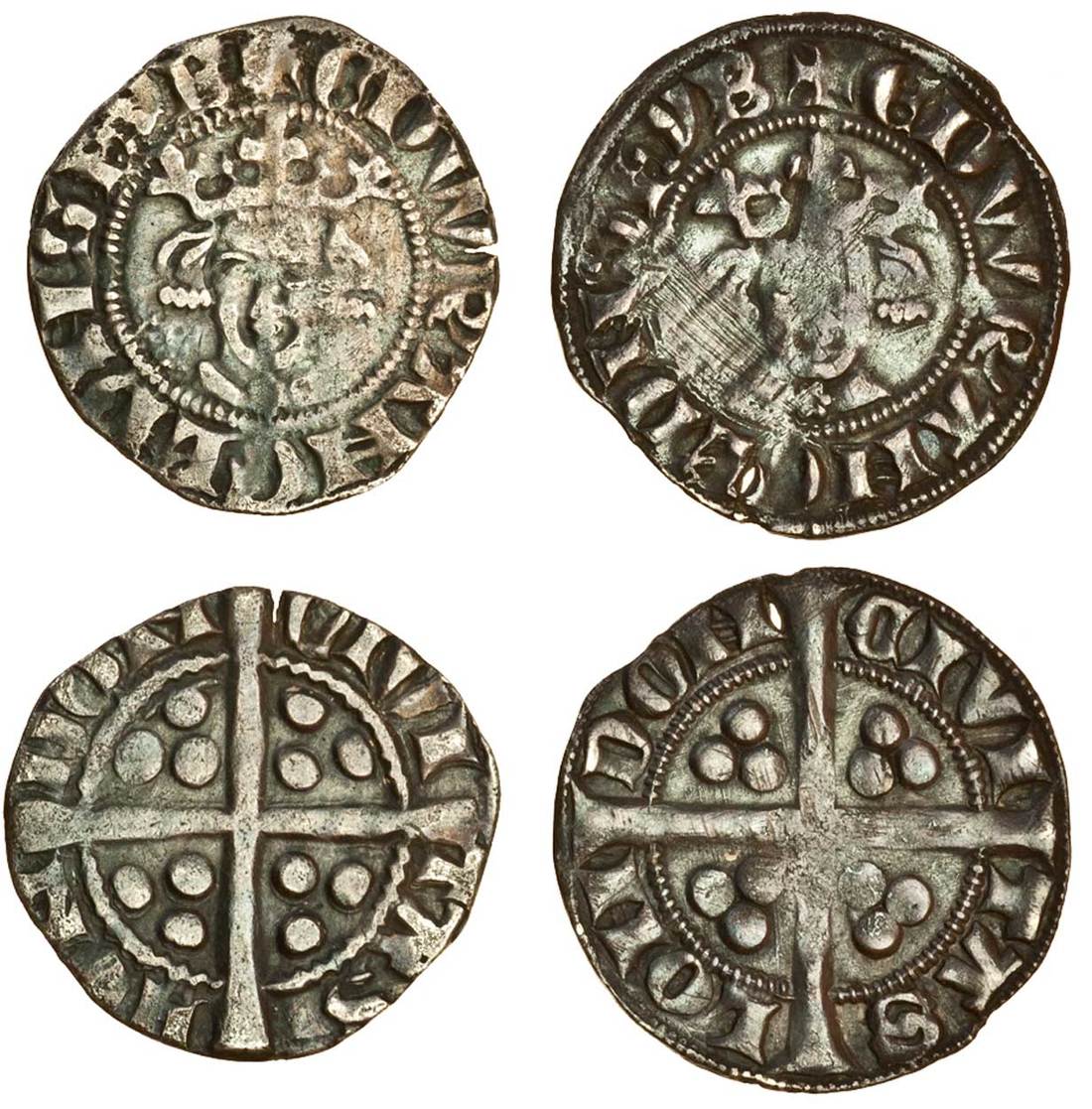Edward I (1279-1307), Penny, London, Class 7a/6aí1 mule, 1.09g, rose on breast, almond eyes, double barred Ns, rev. civi tas lon don, clipped, good fine, Class 7a/6b mule, 1.39g, scuffed with a perforation in the legend, otherwise very fine (N.1032/N.1030, N.1032/N.1031; S.1403/S.1401, S1403/S.1402; the first SCBI 39/302, the second SCBI 39/303 these coins; Stewartby p.173, VIIa/VIa, VIIa/VIb), both extremely rare (2)