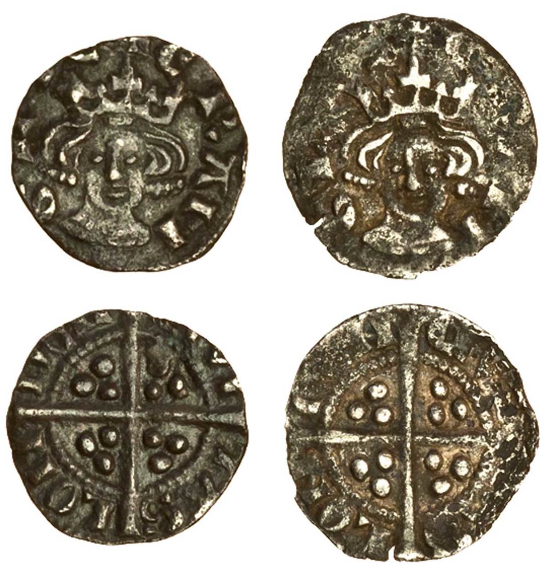 Edward I (1279-1307), Farthings (2), London, Class 7, 0.32g, almond eyes, rev. civi tas lon don, dark tone, very fine, 0.30g, porous, otherwise fine (N.1055; S.1447; the first SCBI 39/1019 this coin; Stewartby p.178, B4), both rare (2)