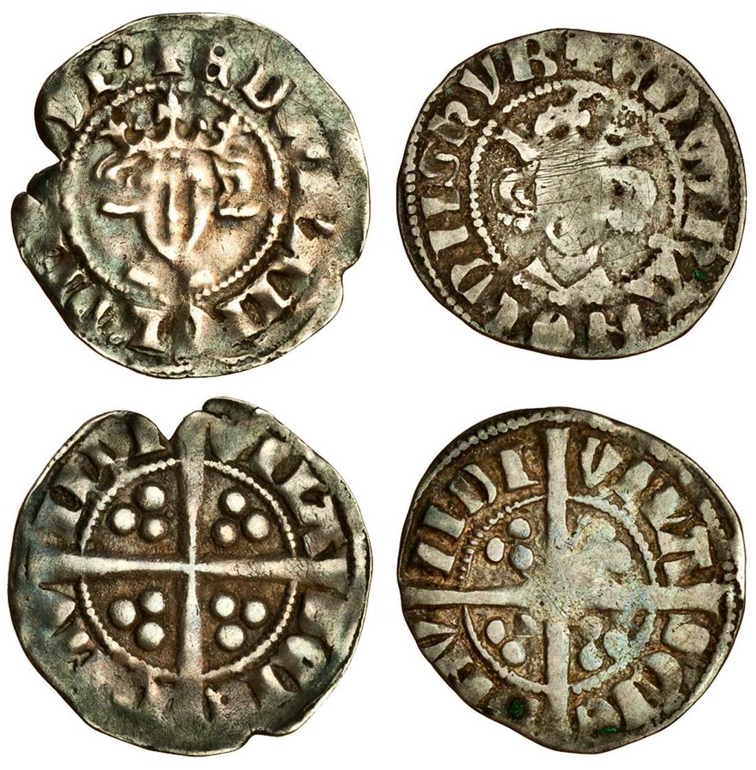Edward I (1279-1307), Pennies (2), Bury St. Edmunds, Class 8a, 1.46g, rev. vila sene dmv NDI, edge nick at 9 o’clock and a soft portrait, otherwise nearly very fine, Class 8b, 1.31g, top tilted S, fine (N.1034/1, N.1034/2; S.1418; the first SCBI 39/327 this coin; Stewartby p.173, VIIIa, VIIIb), the first rare, the second very rare (2)