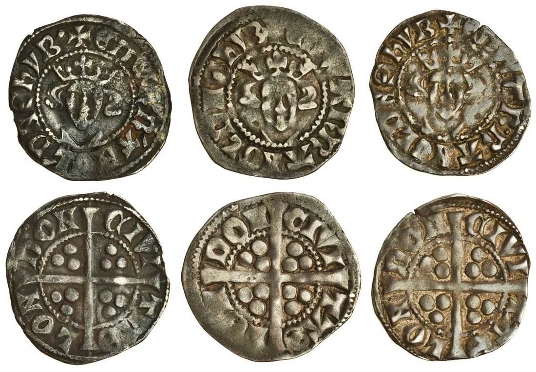 Edward I (1279-1307), Pennies (3), London, Phase 4, Class 10abí4, 1.38g, obv. +edwr’r’angl’dnshyb’, barred Roman Ns, rev. civi tas lon don, barred Roman Ns, dark tone, nearly very fine, Phase 5, Class 10abí5 (2), 1.40g, +edwarrangldnshyb, cruder bifoliate crown, nearly very fine, 1.42g, +edwar•rangldnshyb broken S in the legend both sides, pleasantly toned, very fine (N.1039/2, N.1039/3; S.1409; Stewartby p.174, XP4, XP5), the first rare, the second and third very rare (3)