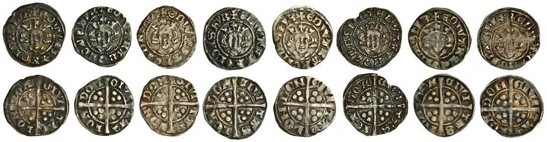 Edward I (1279-1307), Pennies (8), London, Phase S3a (2), Class 10cfí3, 1.34g, obv. +edwarangldnshyb:, crown 3 with tall central lis, left spearhead leans right, broken e and h, rev. civi tas lon don, toned with an excellent portrait, a bold very fine, 1.41g, dark tone, good fine, Phase S3b (6), legend as before, new letters, round backed e and h with turned up tail, long narrow face with hollowed drapery and neck depression, 1.33g, slightly small, a bold fine, 1.40g, variety with ‘broken chin’, nearly very fine, 1.36g, mixed lettering on the reverse, good fine, 1.31g, reads +edwaran etc, with the first bust and old crown, irregular with a small chip,very fine, Variety with terminal colon in legend (2), 1.42g, struck on a small flan, fine, 1.42g, with mixed lettering on the reverse, the obverse double struck, nearly very fine (N.1042/1, N.1042/2; S.1412; Stewartby p.175, XS3a, XS3b, the first pl.6/126 this coin; the sixth, BNJ vol.31 p.83 and pl.5/10 this coin), a useful research group (8)