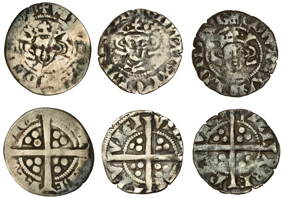 Edward I (1279-1307), Halfpennies (3), Berwick-on-Tweed, fine style, Type IIIb, 0.56g, trifoliate crown, wider hair, Roman n in dns, rev. vill abe rev vici, Roman e, fair, Type IV (2), 0.78g, star on breast, rev. vill abe rev vici, good fine, 0.60g, pellet(?) on breast, fine (N.1087; S.1438; Stewartby p.181, IIIb, IV, the second pl.7/173 this coin; also BNJ vol.62 p.99 & pl.8/27 this coin), the second and third very rare (3)