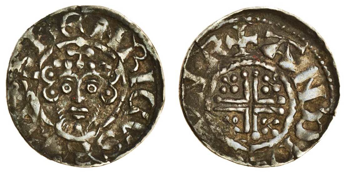 Short Cross, Sterling Penny, Group AA, 1.33g, ‘Rochester’, ‘Andrev’, henricvsr/ex, style of class V, annulet eyes, pellets-curls 2/2, rev. +andr[ ]on•r, i.m. cross pattée, the reverse struck off-centre and a small edge crack at 12 o’clock, nearly very fine (Stewartby, NC 1995 pl.40/10 this coin)