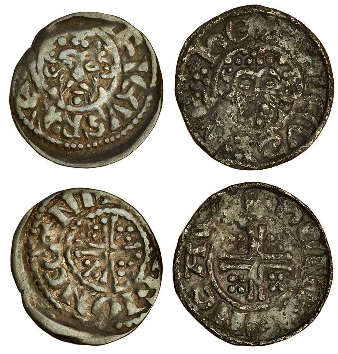 Short Cross, Sterling Pennies (2), Group CF, 1.38g, ‘Canterbury’, ‘Henri’, [ ]rievsr/e[ ], bust with cinquefoil on crown , pellets-curls 2/2, rev. +[ ]rioncant, i.m. cross pattée, struck off-centre both sides, fine or slightly better (this coin), ‘Canterbury’, ‘Henri’, 1.31g, henrievsr/ex, reversed , thick waisted s, cinquefoil sceptre head, rev. +henrioneawe, pitted with a dark tone, fine (Stewartby, NC 1995 p.247/75iii and pl.44/78 these coins), the second possibly unique with this style of sceptre head (2)