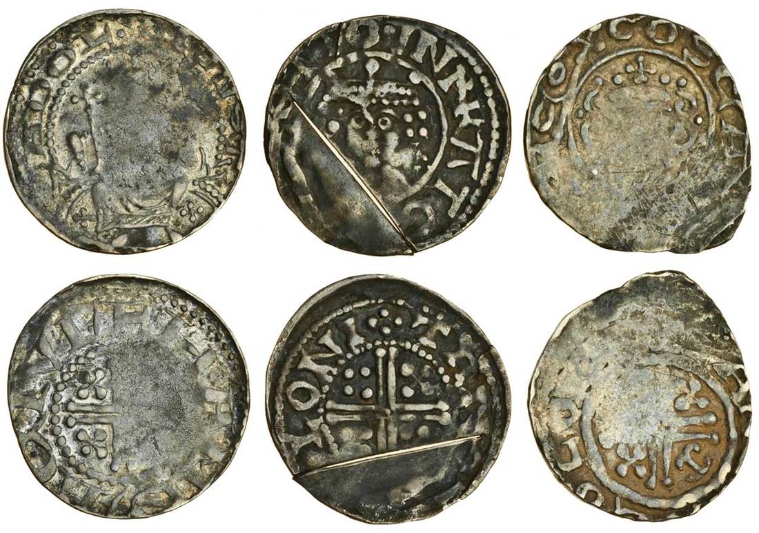 Short Cross, Sterlings (3), 1.35g, Hamm, Count Adolph I (1199-1249), obv. monst adol, Emperor seated, sceptre left, orb right, rev. +hamm aciv, voided short cross, cross pommée in each angle, flat centres, almost fine, Cologne, 1.26g, Otto IV, (1209-18), obv. otto•inprato[ ], facing bust, rev. tan[ ]loni, voided short cross, cross pommée in each angle, cut almost in two, otherwise fine, Pyrmont?, 1.25g, Gottschalke I, (d.1243), obv. gosca[ ]/co, facing bust, key left, rev. [ ]an[ ]colon[ ], voided short cross, cross pommée in three angles, X made of conjoined Cs in the fourth quarter, struck off-centre on a spread flan with weak areas, fine in parts (Chautard pl.XXX/obv.6, rev.7; Chautard pl.XXI/1; ES652), (3)