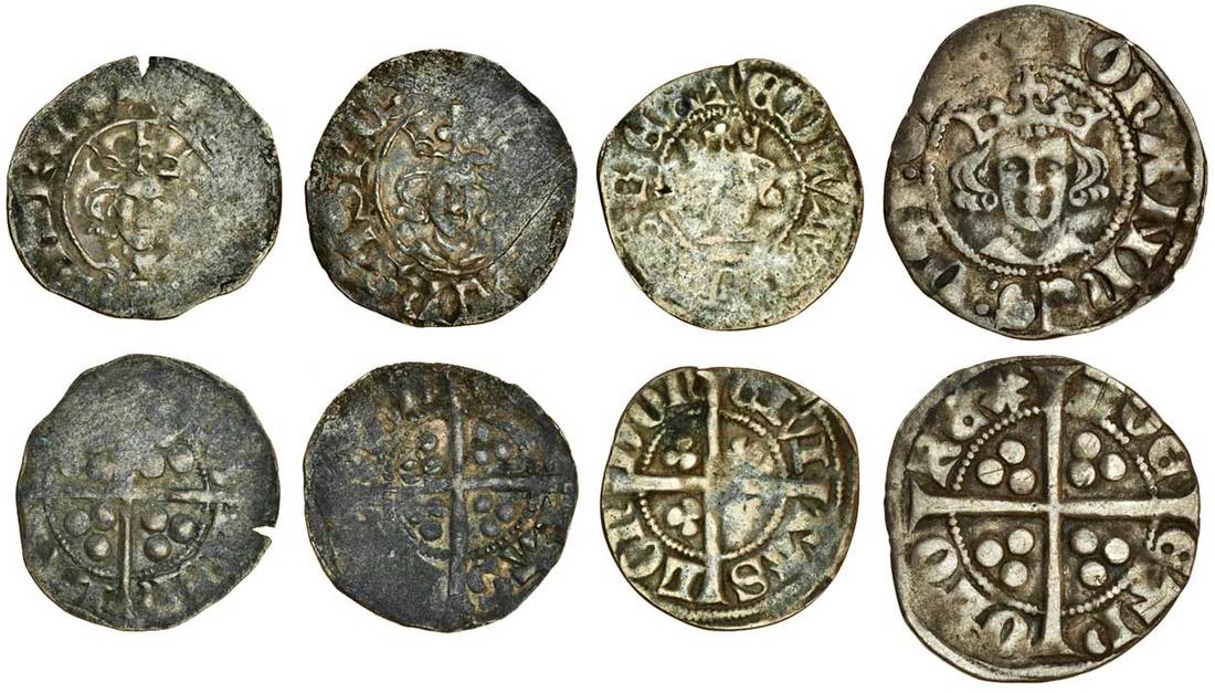 The first three all from obviously debased silver, these possibly part of a parcel of 38 coins found at Hull during construction of the Humber Dock, Hull in 1807.