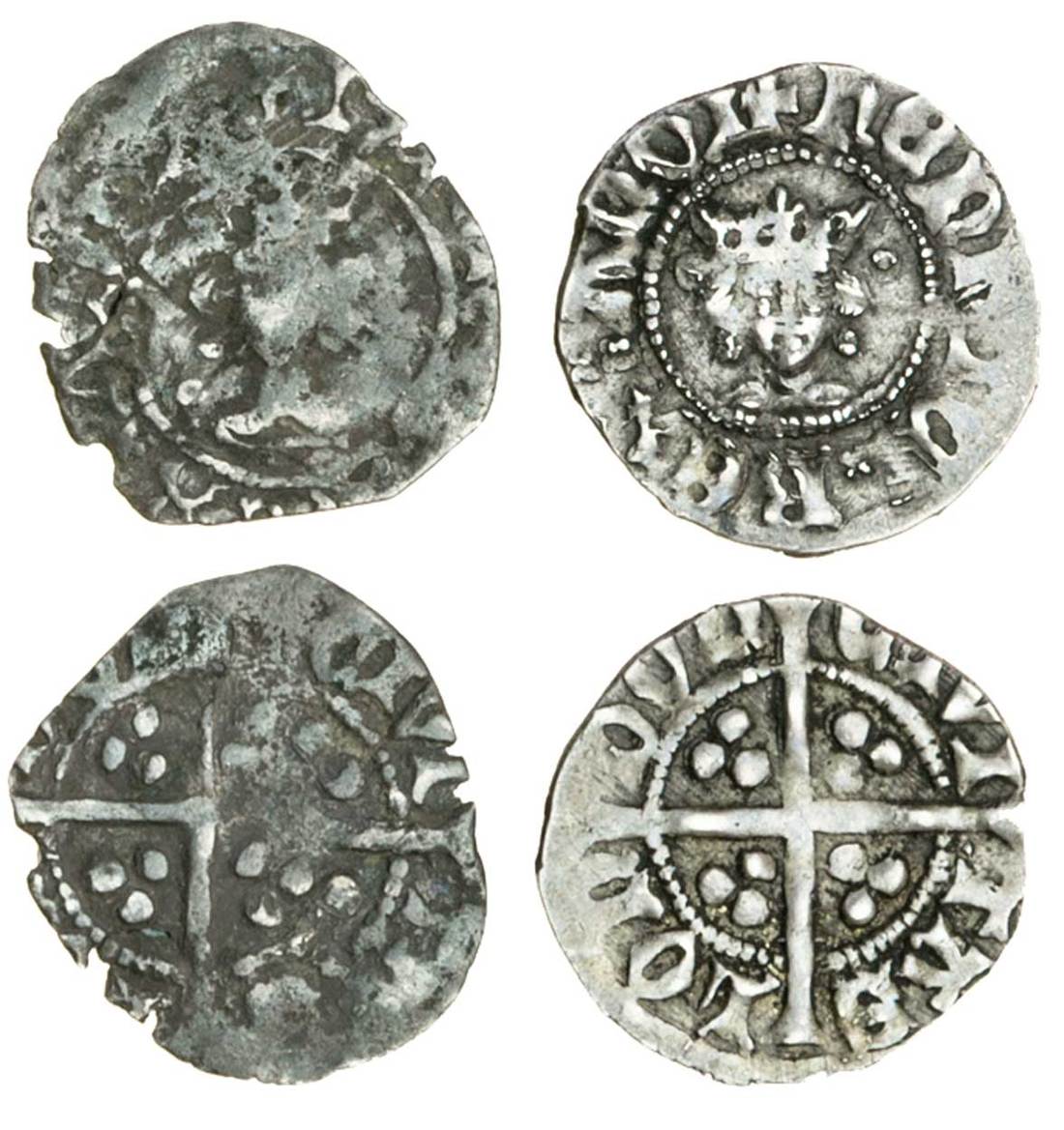 Henry IV (1399-1413), Halfpennies (2), Light Coinage, London, type Pa, 0.35g, mm. cross pattée, henric rex angl, saltire stops, annulets by neck, rev. civi tas lon don, Lombardic Ns; type Pb, 0.51g, annulets by crown, rev. pellet stops(?) in legend (N.1367; S.1737; Stewartby p.334 Pa, Pb var., the second, pl.22/406 this coin), the first cracked, fine, the second very fine, very rare (2)