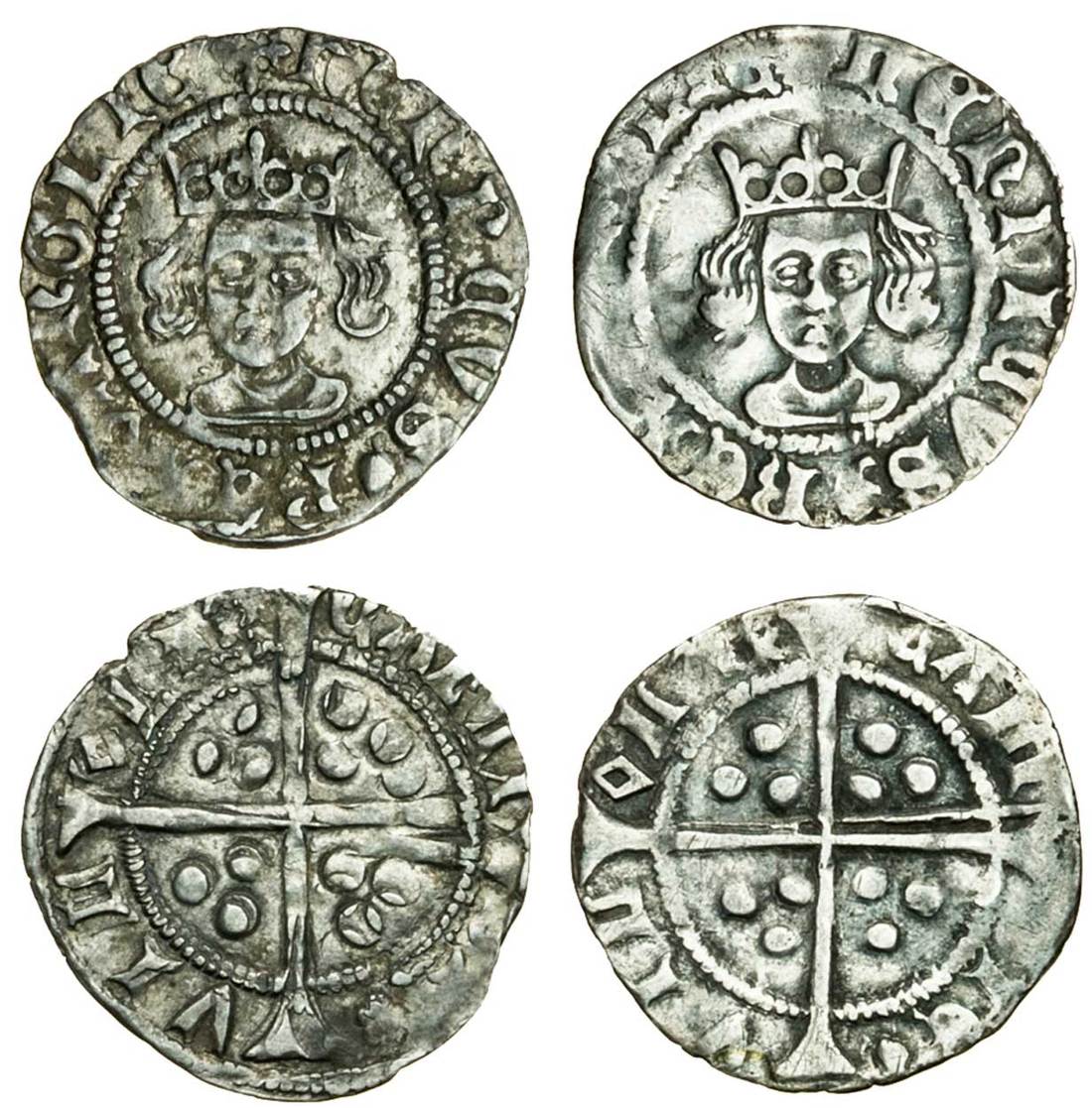 Henry VI, (1422-1461), Pennies (2), Calais, Pinecone-mascle/Rosette-mascle mule, 0.96g, mm. cross IIIb/-, henrcvs rex anglie, pinecone before, mascle after rex, rev, mascle before la, pinecone after sie; Pinecone-mascle issue, 0.88g, mm.cross IIIb/-, reads henricvs, pinecone before, mascle after rex, rev, as previous (N.1465/1449, 1465; S.1879/1865, 1879; Stewartby p.332, III/II, III), very fine and better, the first very rare (2)