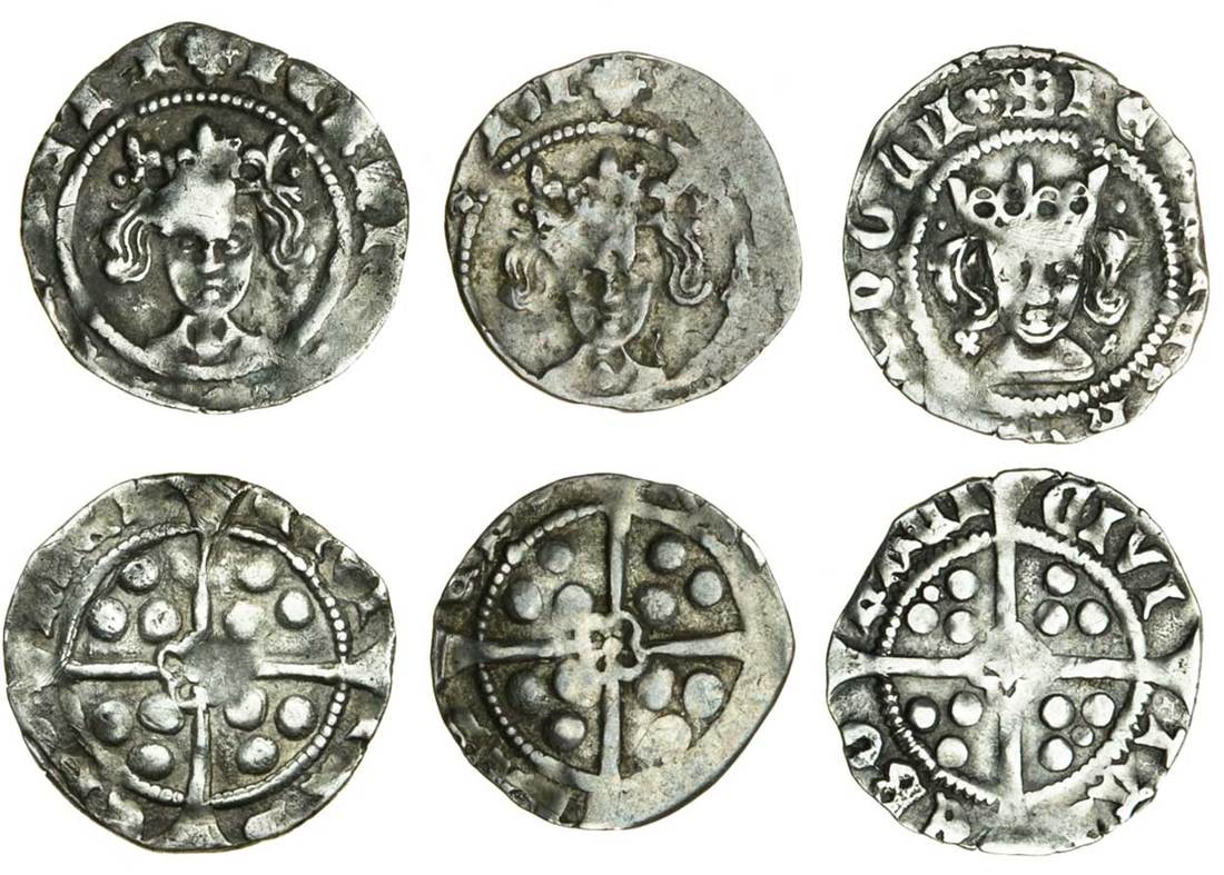 Henry VI, (1422-1461), Pennies (3), York under Archb. W Booth, Leaf-pellet issue, 0.89g, mm. cross IIIb/-, henric rex anglii, leaf on breast, pellets by crown, rev, civi tas ebo raci, extra pellet inner circle by civi and ebo, pellet in quatrefoil at centre of reverse; 0.91g, angli, otherwise as previous; Cross-pellet issue, 0.93g, mm. cross IIIb/-, henric rex angli, nothing on breast, pellets by crown, saltires by neck, rev, extra pellet in tas and raci quarters, cross in quatrefoil at centre (N.1510 (2), 1521; S.1924 (2), 1940; Stewartby p.332, VIIIa, X), fine to nearly very fine, the last rare (3)