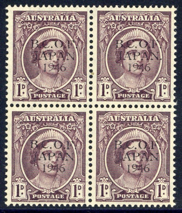Type One (Thin Overprint) on Stamps: 1d. with overprint in black, a block of four, fine unmounted mint. BW J2PP(2)A, $1,400