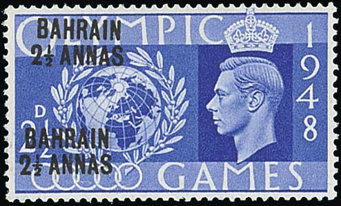 1948 Olympic Games 2½a. on 2½d. ultramarine, variety surcharge double (R.7/4), fine mounted mint. B.P.A. Certificate (1965). S.G. 63a, £3,500. Photo