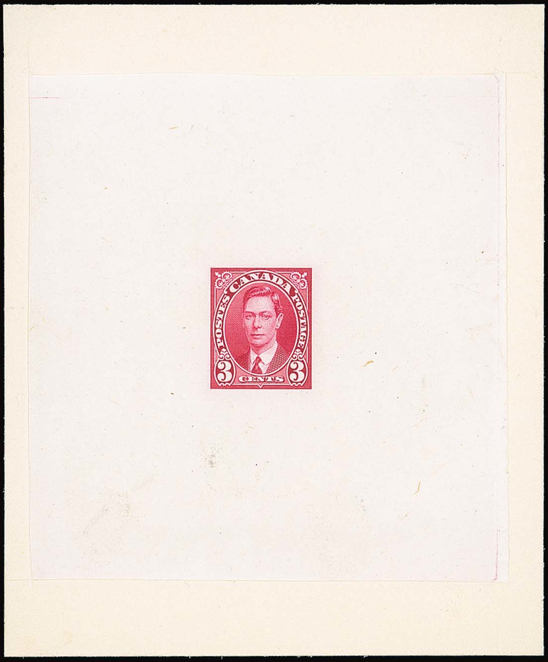 3c. colour trial in carmine, affixed to card (92x110mm.). Photo