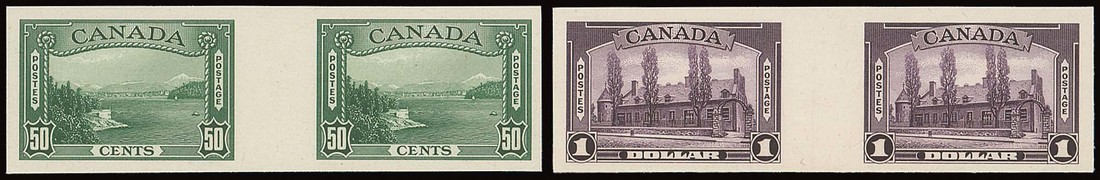 10c., 20c., 50c., $1 and Air 6c., all in interpanneau pairs affixed to card, the 10c. vertical the others horizontal; a fine group. Cat. £4,550. Photo