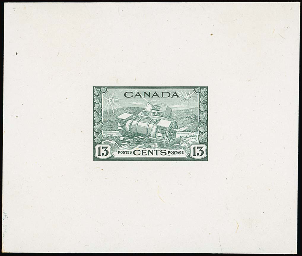 13c. deep green in unfinished state lacking some detail to tank and foreground etc., on card (84x72mm.). Photo