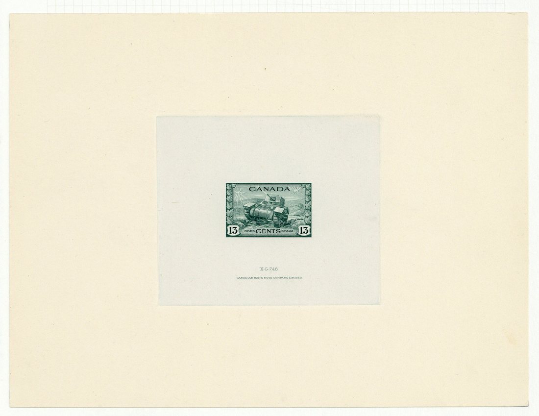 13c. dull green with die number and imprint, affixed to card (200x153mm.)