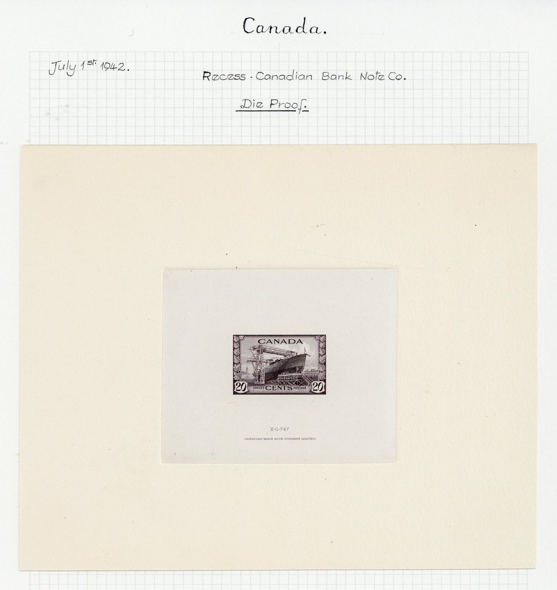 20c. chocolate with die number and imprint, affixed to card (183x151mm.)