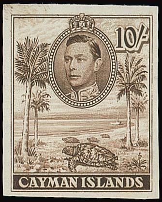 10/- in chocolate on gummed watermarked paper, fine. A major KG VI rarity and believed to be one of only two known. Photo