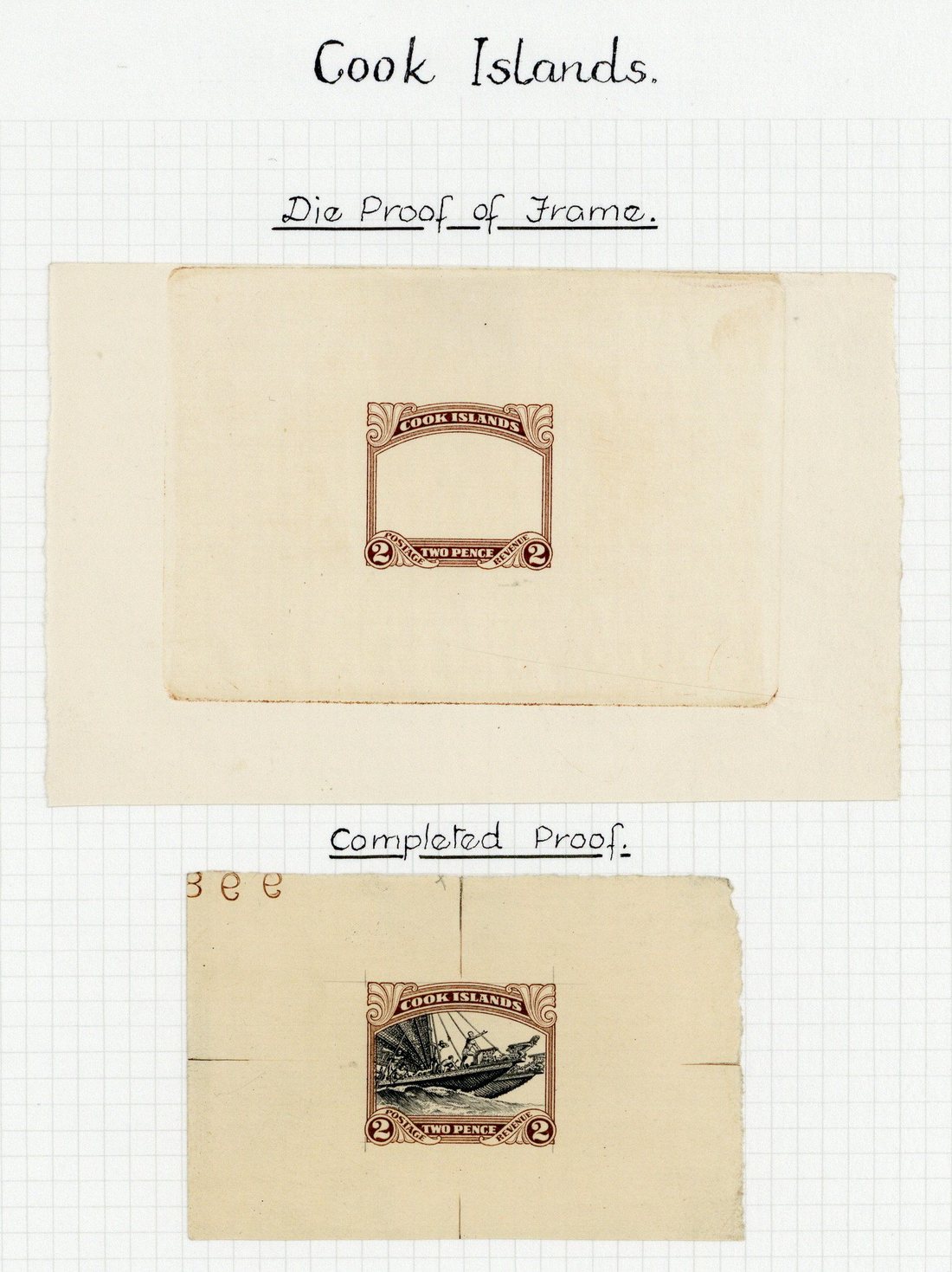 2d. die proof of the frame in brown, progressive die proofs of the vignette in black (6, two showing guide lines) and a die proof of the complete design in black and brown showing guide lines, all on wove paper of various sizes, fine