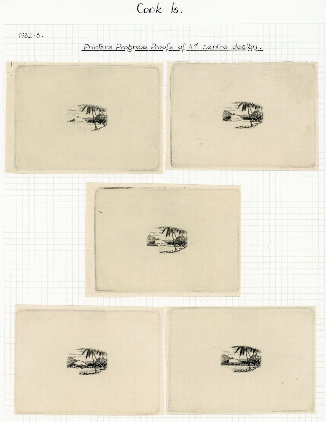 4d. progressive die proofs of the vignette in black (5) and die proofs of the complete design in black and bright blue (3, two with guide lines), all on wove paper of various sizes, fine