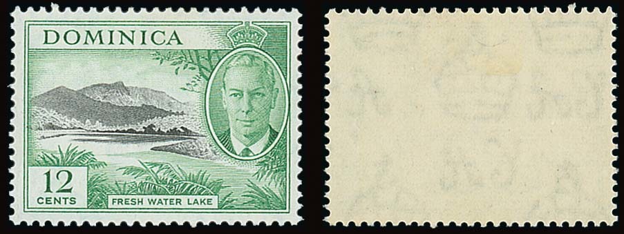 1951 12c. black and bright green with "c" of "ca" missing from watermark, fine lightly mounted mint. S.G. 128a, £1,200. Photo
