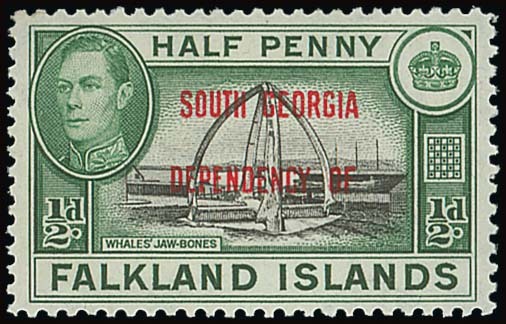 South Georgia ½d. black and green with variety watermark sideways, fresh and fine mint. Very rare. S.G. B1a, £4,750. Photo