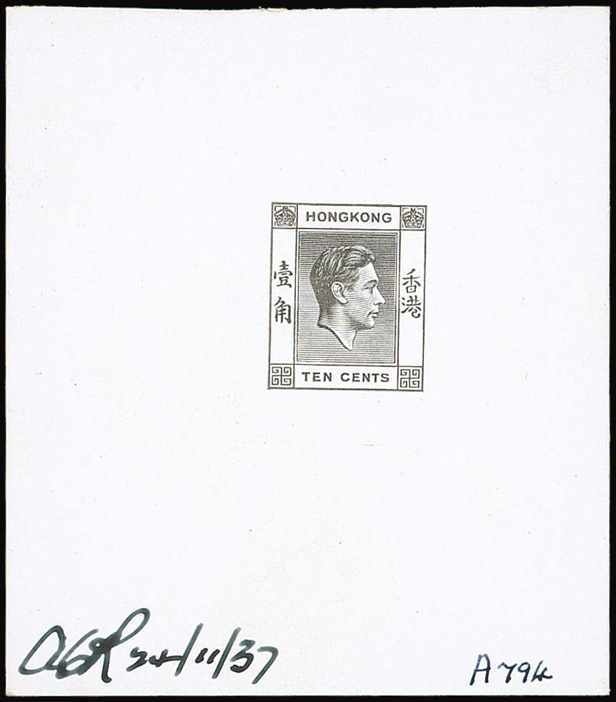 10c. in black on glazed card (72x82mm.) marked "a794", initialled and dated "24/11/37", fine. Photo