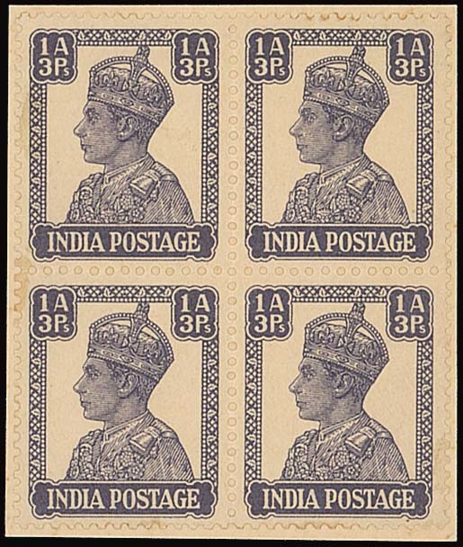 1940-43 1a.3p. perforated colour trial in slate-violet, a block of four affixed to card. Scarce. Photo