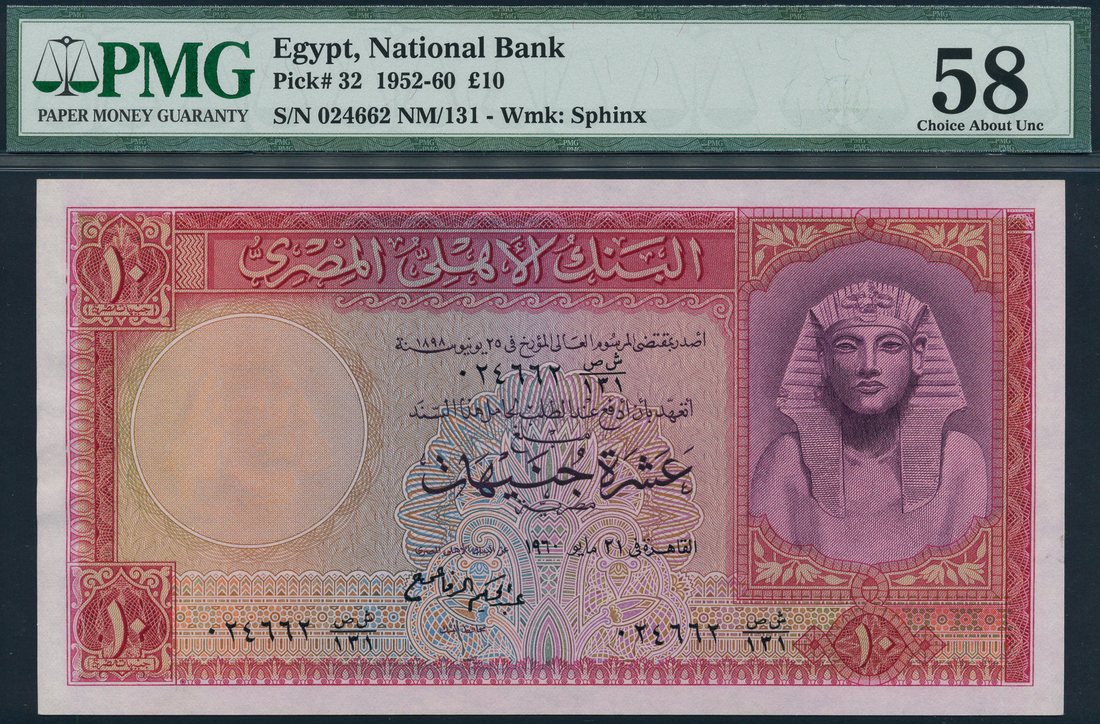 (x) National Bank of Egypt, £10 (3), 1958, prefixes SD/53, SD/81 and SD/131, red, on multicolour underprint, Tutankhamen at right, signature of A El Emary, reverse red, man in ruins at centre