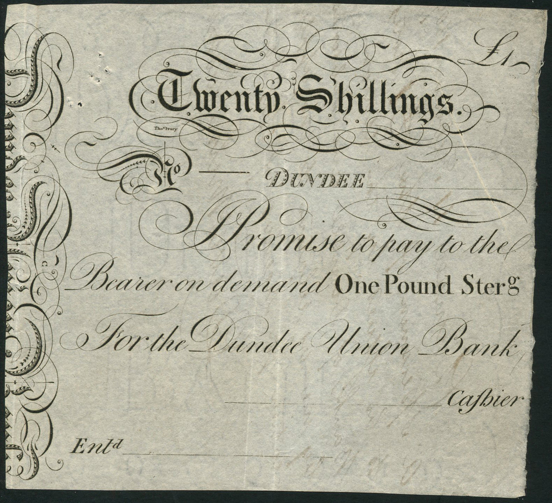 Dundee Union Bank, unissued £1, ND (ca 1809), black and white, bank title at left, value top centre £300-400