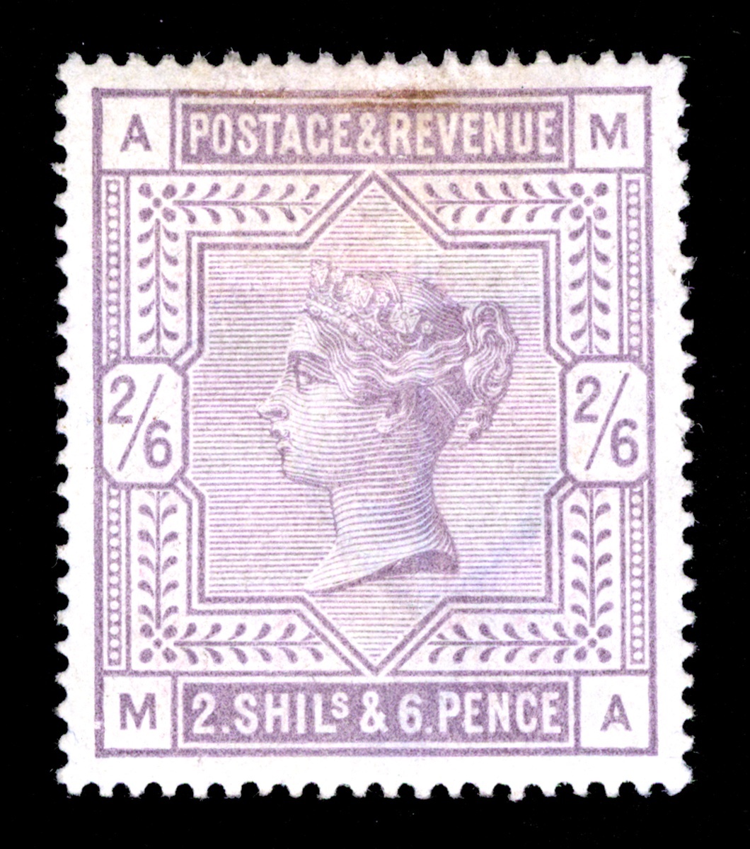 #96a, 1883 2/6 Lilac on bluish paper, well centered, o.g., h.r., faults at top, very fine appearance; 2007 Brandon certificate (S.G. #175; £6,750).