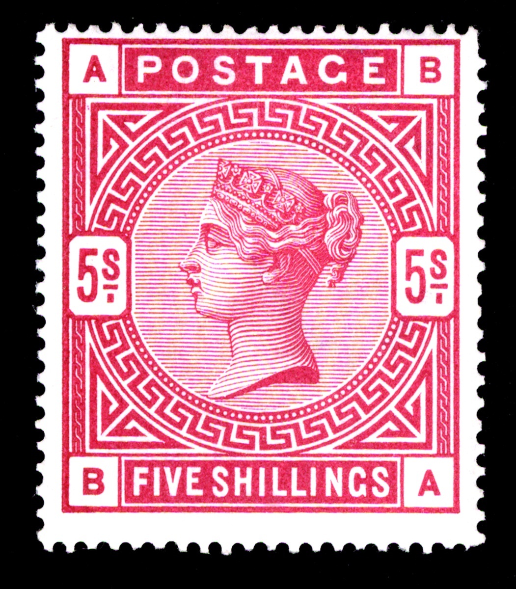 #108b, 1884 5/- Deep crimson, intensely rich color on fresh paper, o.g., barest trace of hinging, fine (S.G. #181; £975).