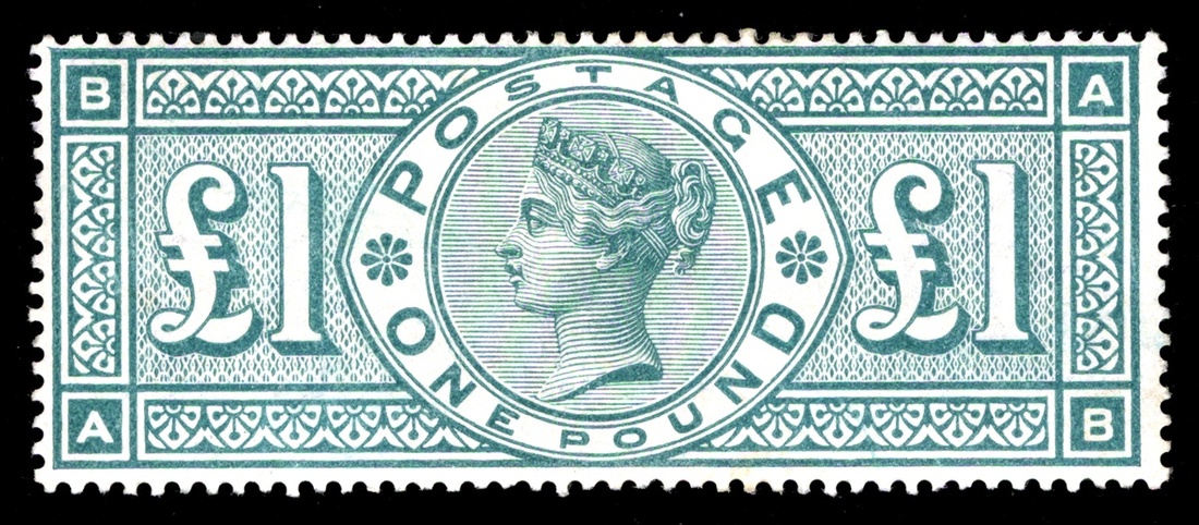 #124, 1891 £1 Green, vivid rich color and crisp impression, o.g., h.r., fine (S.G. #212; £4,000).