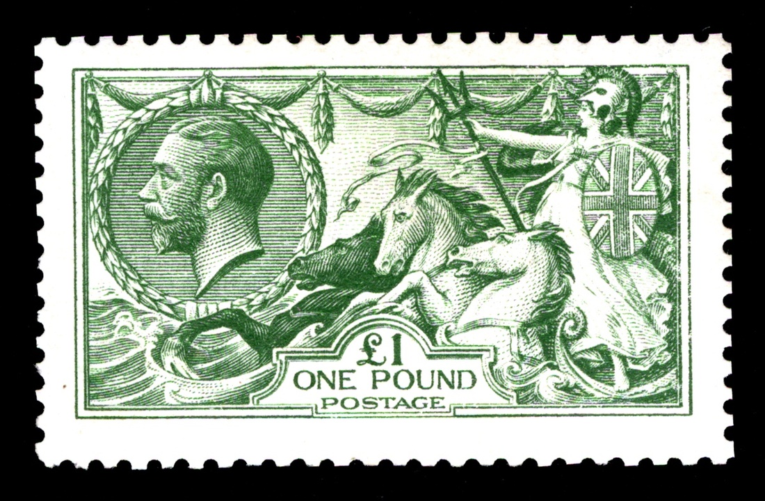 #176a, 1913 £1 Dull blue green, nicely centered, rich color, regummed, very fine (S.G. #404; £3,500).
