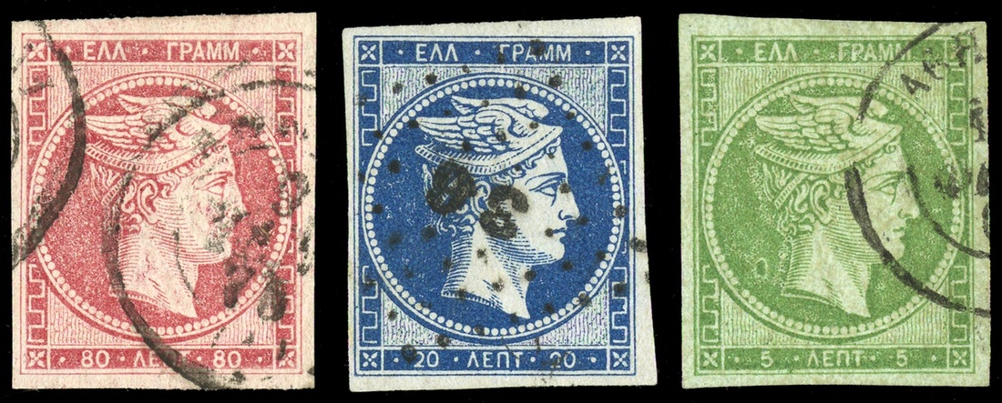 #2/53, 1861-80 Large Hermes Head select collection of 46 choice used stamps selected for their uniform exceptionally high quality and for reference of the different printings, most of the stamps are from the earlier 1861-67 printings including four different Athens provisionals including two coarse prints and two fine prints, a nice range of consecutive printings showing shades, several cleaned plate values including the scarcer 80l Rose carmine(#29), plus a few later issues, most notable about this collection is there extraordinary quality, each has full to large balanced margins, fresh colors and without any faults, very fine-extremely fine; total Scott value $2,450.00.