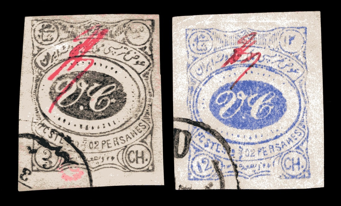 #222-27, 1902 1c-12c Meched Provisional, total of ten stamps including two 1c black, both early state printings, one with early control with extra loop, the other later control, both sheet cancelled (c.t.o.), two 2c Black, one first state printing with late control, the other second state printing with early control, both sheet cancelled, a scarce 3c on mesh paper, early state print with later control and sheet canceled, a postally used 5c Violet, second state printing and late control, three 5c Black including one on piece, all three first state printing with late control, and a scarce 12c Blue first state printing with early control with extra loop and sheet cancelled, all with mostly large margins, fine-very fine; all signed by one or more P.L. Pemberton, J. Schlessenger and W. Sellschopp.