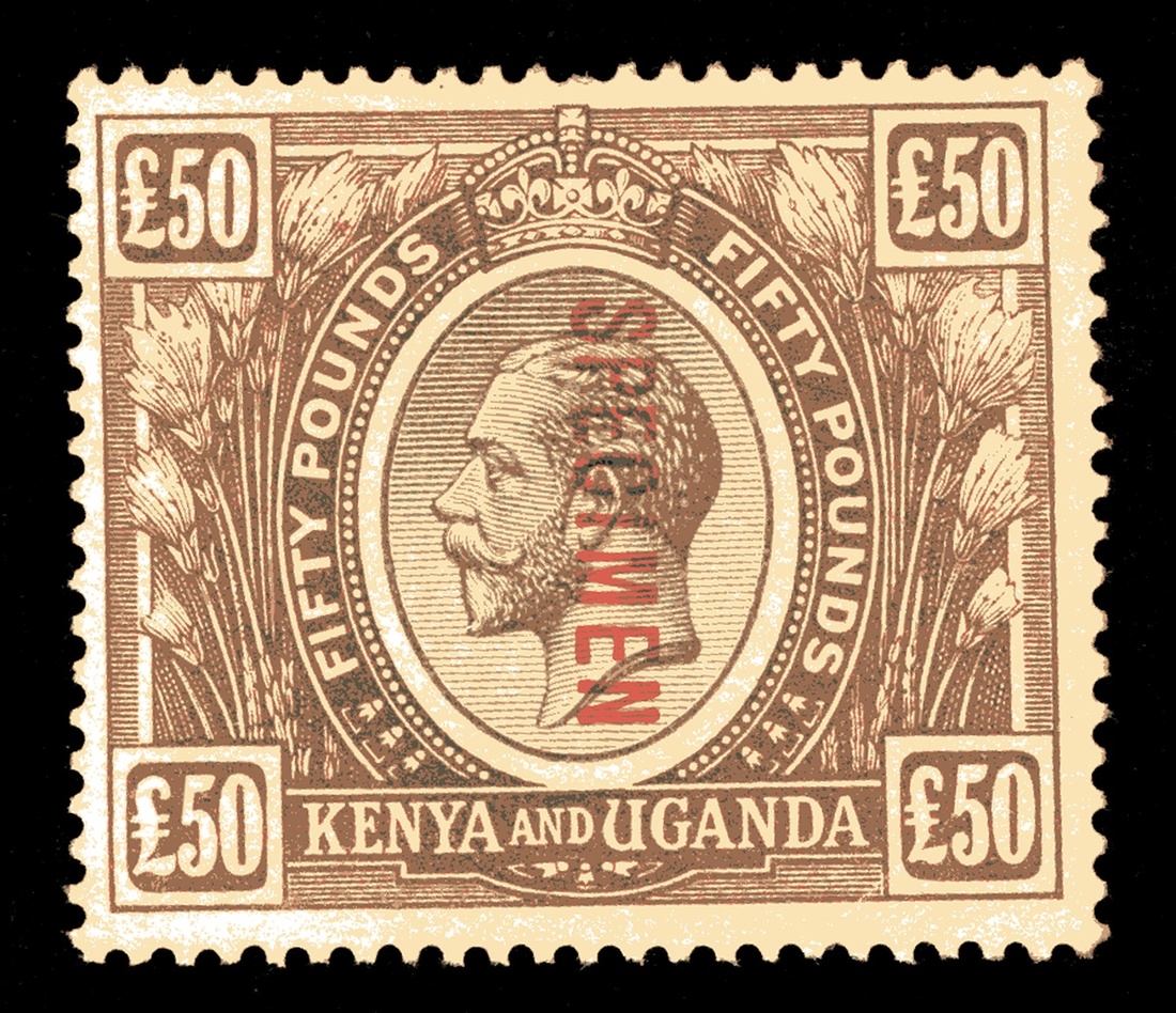 #41Ds, 1922 £50 Brown and black, Overprinted "SPECIMEN" in red, o.g., l.h., diagonal crease at lower right, very fine appearance (S.G. #103a; £1,800).