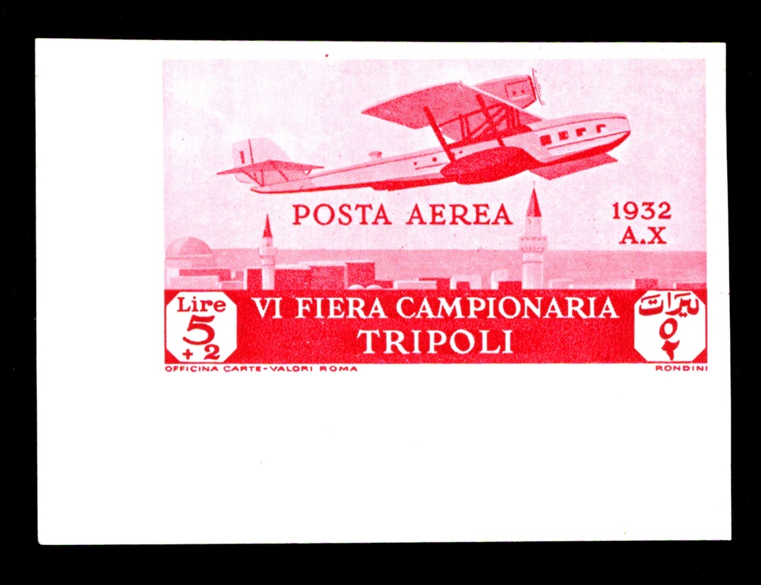 #C4-7P, 1932 50c-5L+2L 6th Sample Fair, plate proofs on thin unwatermarked card matched set of bottom left corner sheet-margin singles, fresh and very fine; only 150 sets were produced for presentation purposes; 2010 Sismondo certificate (Sassone A4-7 Footnote; €640).