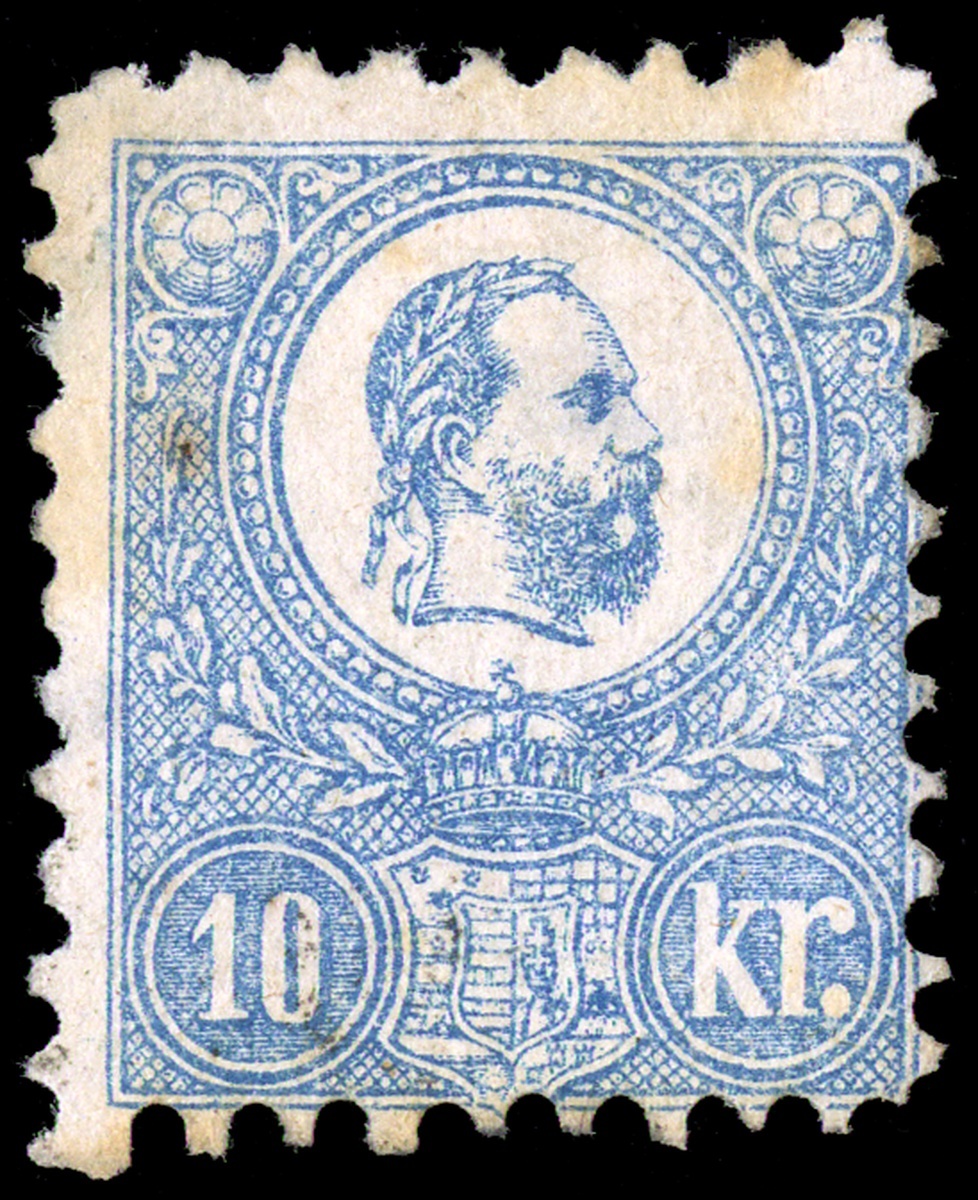#4a, 1871 10kr Pale blue lithographed, a scarce shade of this first issue value, o.g., thin spot and tiny inclusion, fine appearance and scarce (Phil. Hun. #4b; 450,000 =$1,562.00).