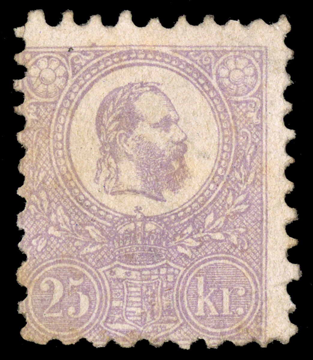 #6, 1871 25kr Violet lithographed, mint single with part o.g., fine centering (Phil. Hung. #6; 200,000Ft =$694.00).