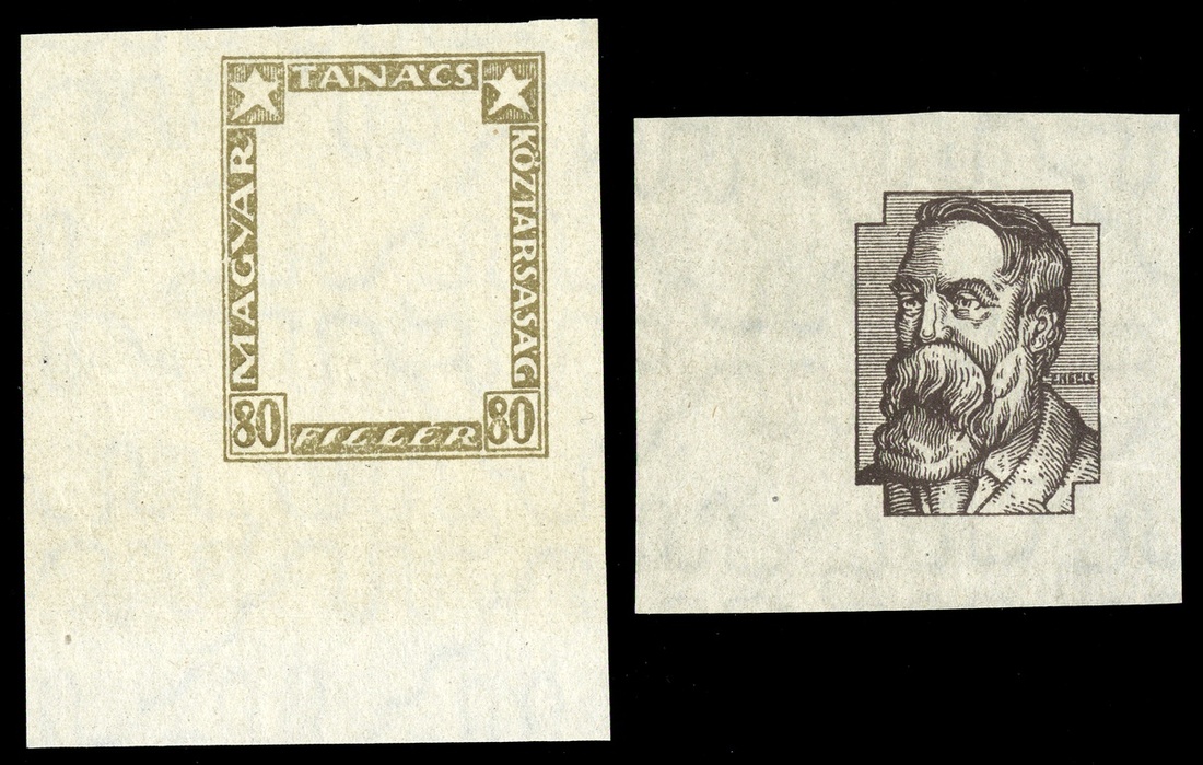 #198P-202P, 1919 20f-80f Portraits, frame and vignette proofs cplt., ten different in the issued colors, imperforate on ungummed paper, fresh and very fine; (Phil. Hung. # 296P-300P).
