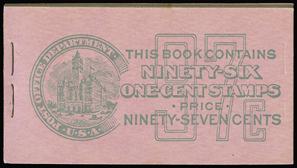 #632a, 1c Green, booklet pane of six, unexploded 97c booklet containing sixteen panes (BK76), panes generally well centered, covers clean and fresh, very fine.