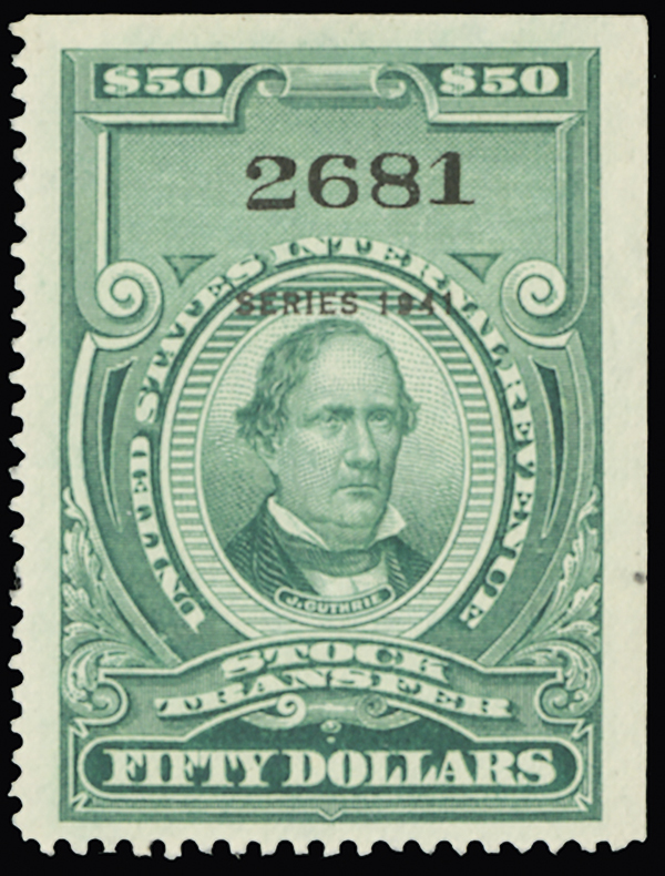 #RD112, $50.00 Bright green, Series 1940, unused without gum as issued, beautifully centered, rich color on crisp white paper, extremely fine; 2006 PF certificate.