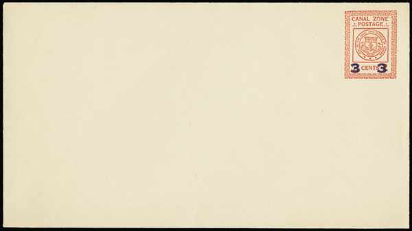#U14, 3c on 2c Carmine, pristine mint entire, fresh and extremely fine; 2007 APS certificate.