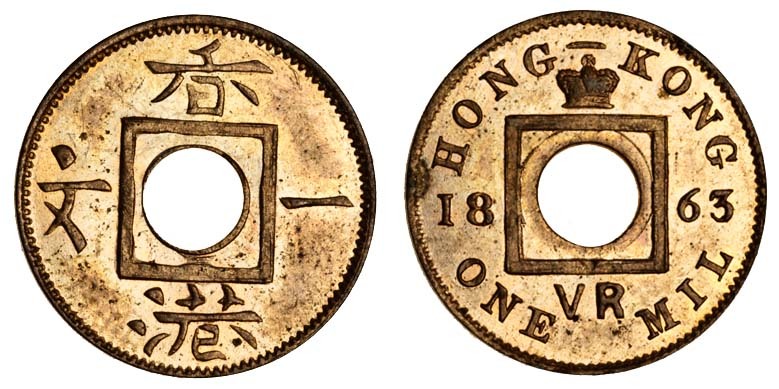 Hong Kong, Victoria (1837-1901), Mil, 1863, Chinese value, rev. square dividing date, crown above (KM 1), uncirculated with brilliance