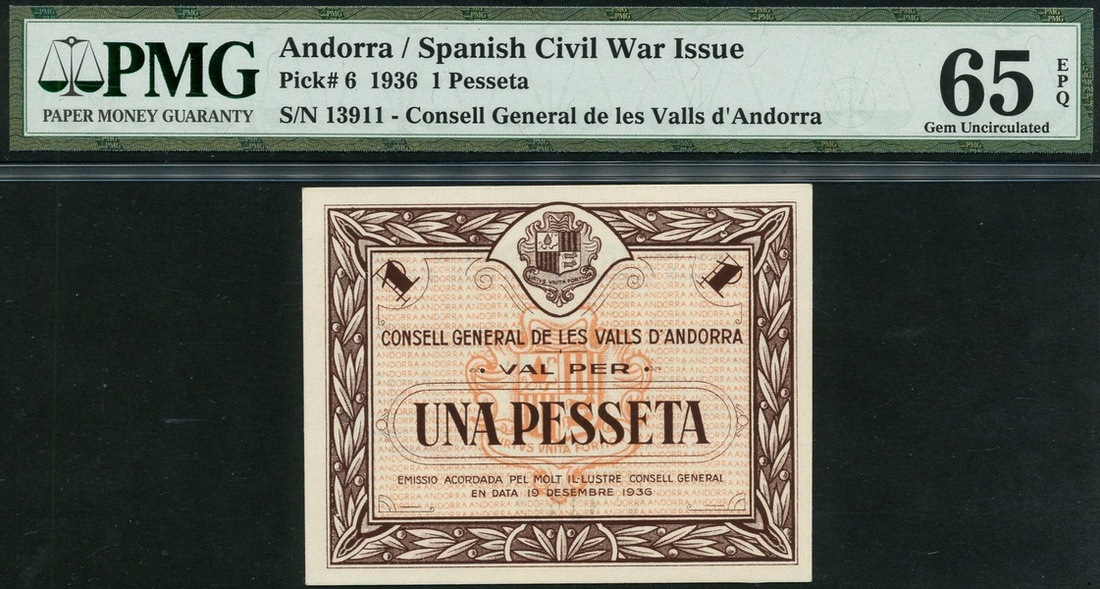 (Pick 6, TBB B106), in PMG holder number 65 EPQ, gem uncirculated
