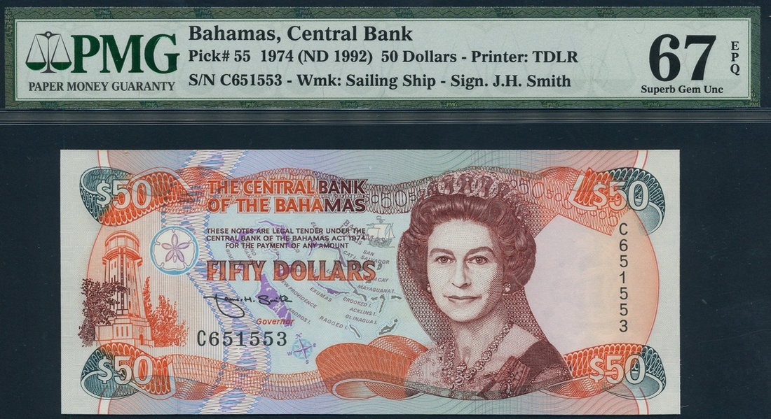 (Pick 55, TBB B321), in PMG holder number 67, EPQ, a superb grade for this very scarce note from an incredibly popular country for collectors