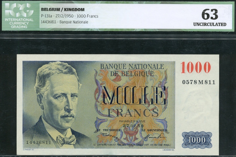 Banque Nationale de Belgique, 1000 francs (2), 27 February 1950 and 5 January 1973, serial numbers 14436811 and 271400184, multicolour, first, portrait King Albert, second, portrait, Gerard Kremer