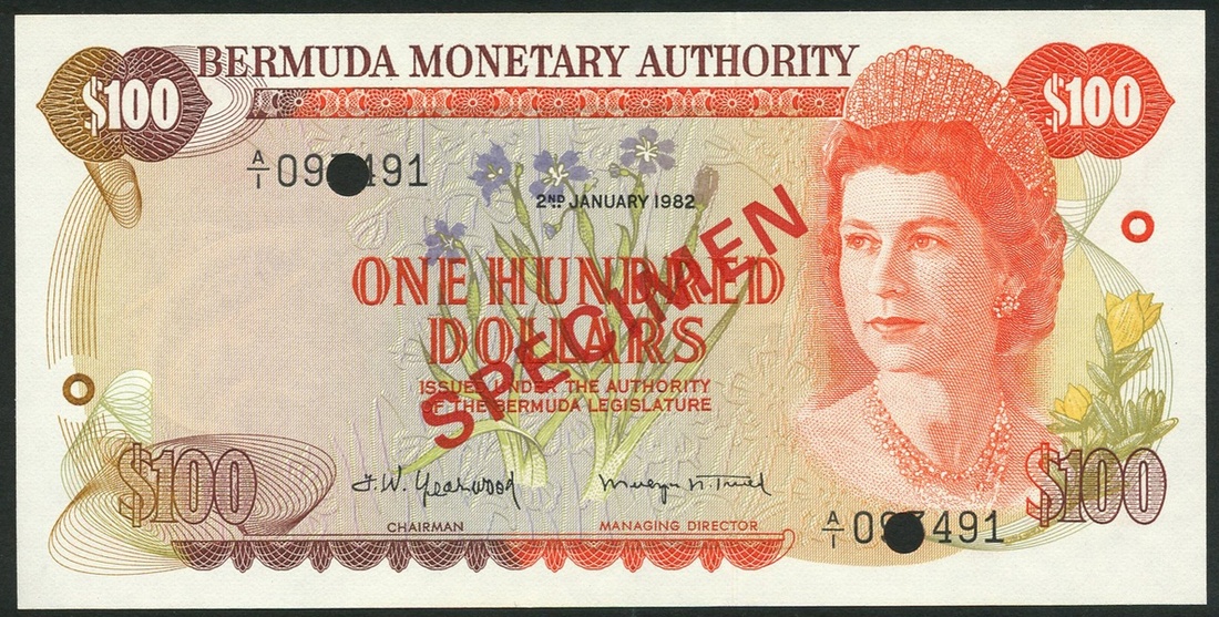 Bermuda Monetary Authority, a set of specimens comprising, $1, 1 May 1984, $5, 1 April 1978, $10, 1 April 1978, $20, 1 May 1984, $50, 1 April 1978, $100, 2 January 1982, blue, purple, mauve, green, brown and orange respectively, all feature portrait Queen Elizabeth II at right